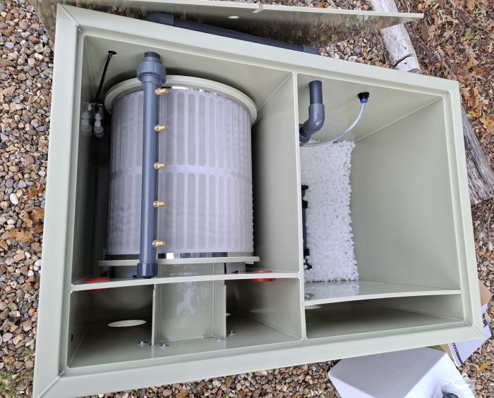 Ultra efficient mechanical filtration, combined with excellent efficient biological filtration, all in one very compact unit.