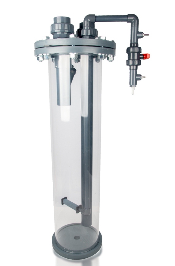At last we are able to offer top quality pressurised ozone reactors - these units can be used on pretty much any type of system, with gravity or pressurised filters, are relatively compact and very well made. They employ clever technology to introduce ozone into a pressurised reactor and use countercurrent mixing technology combined with a non return exhaust system to allow residual gas to vent to waste without water loss. They employ both forced air (or oxygen) and venturi injection to provide very efficient ozone gas mixing and maximum contact time. Made from Acrylic tube and pvc fittings they are top quality and used widely in industrial applications as well as aquatic applications.
